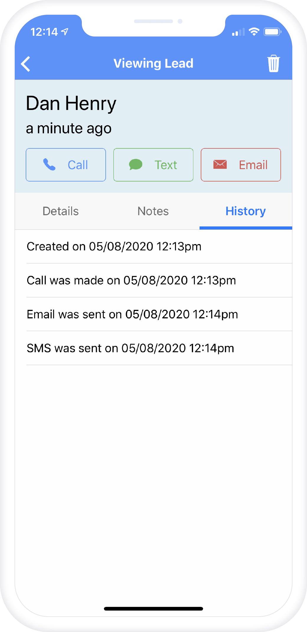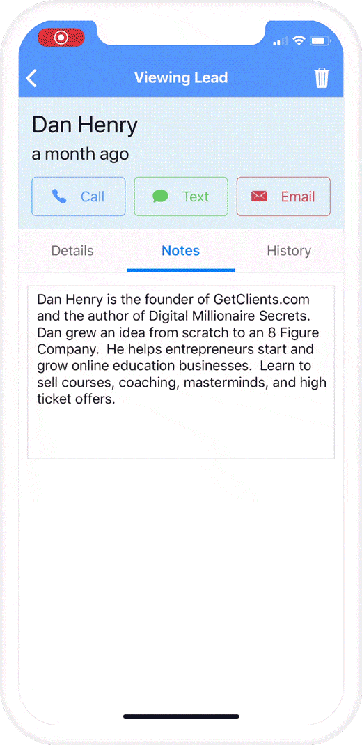 Call, text or email leads with the tap of one button!